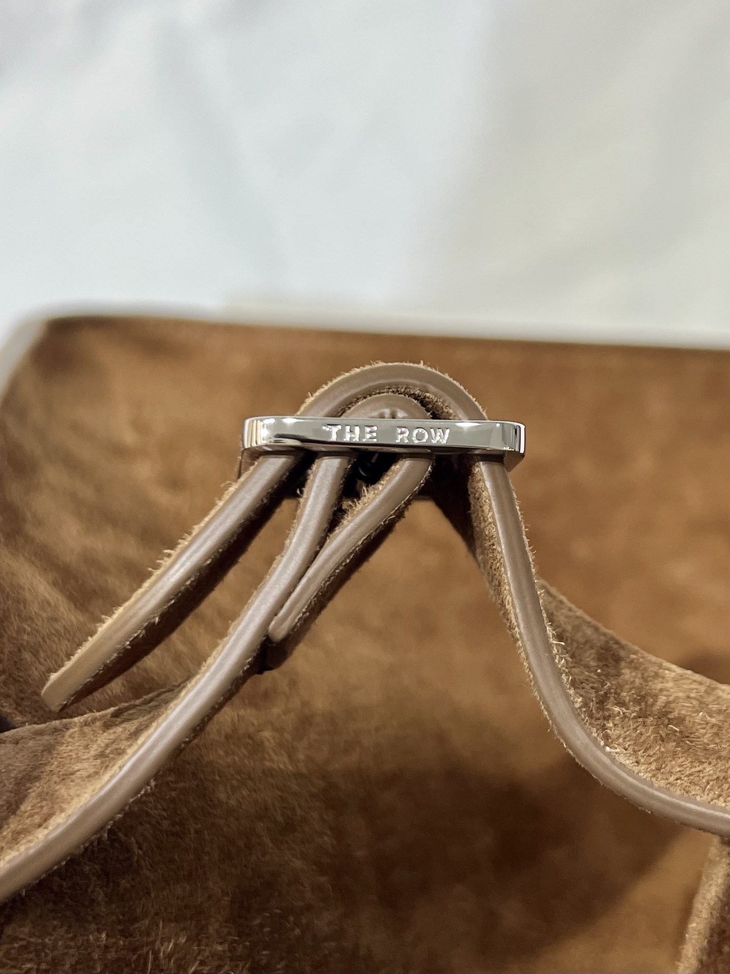 더로우 에센셜 컬렉션 꼬냑 스웨이드 카프스킨 실버메탈