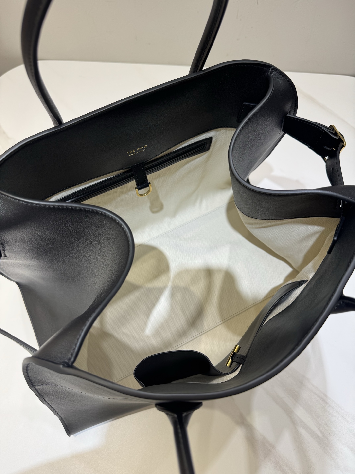 더로우 에센셜 컬렉션 블랙 스무스 카프스킨 골드메탈