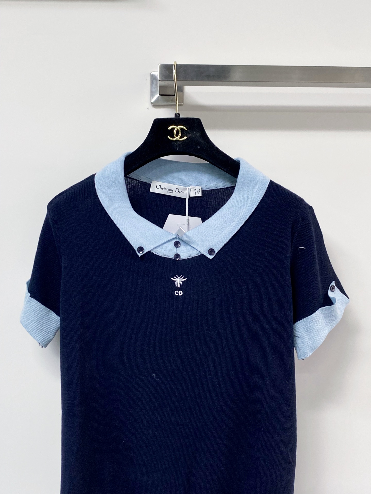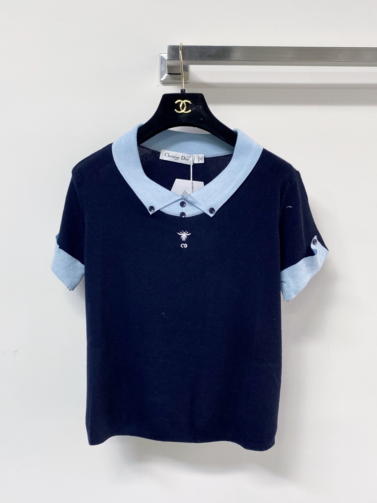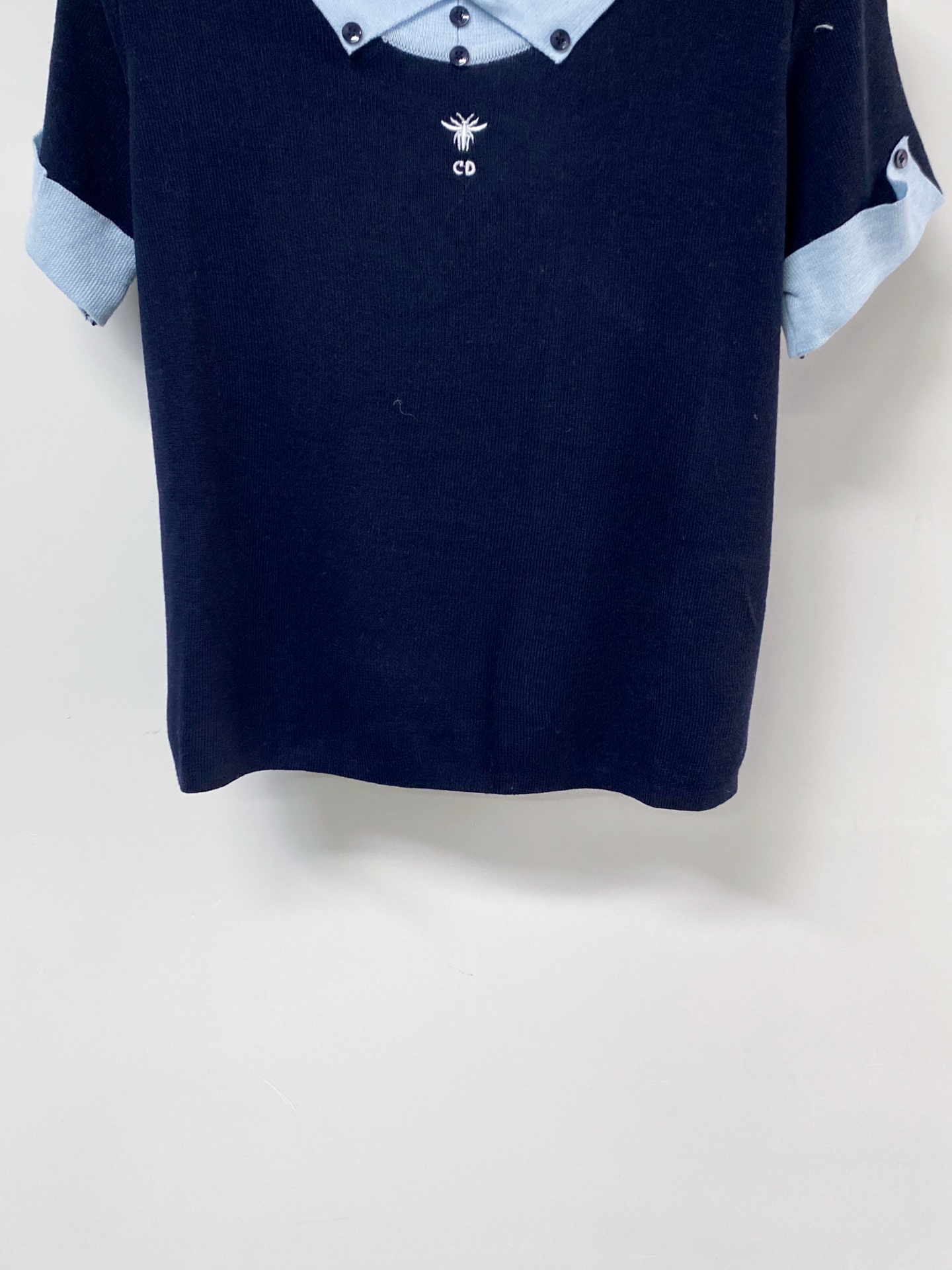 디올 벌 자수 배색 셔츠 (#1773942303037 - 화이트, 네이비 블루 - S, M) - 디올 의류 레플리카 - 세미샵