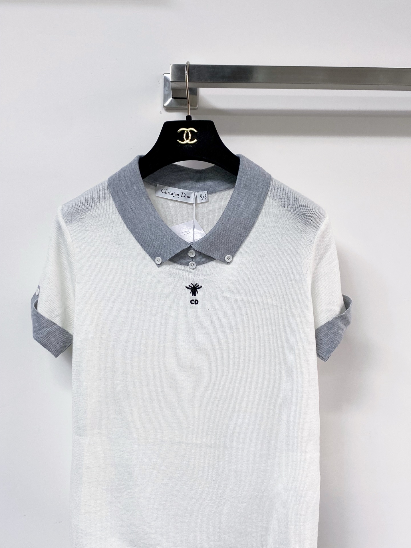 디올 벌 자수 배색 셔츠