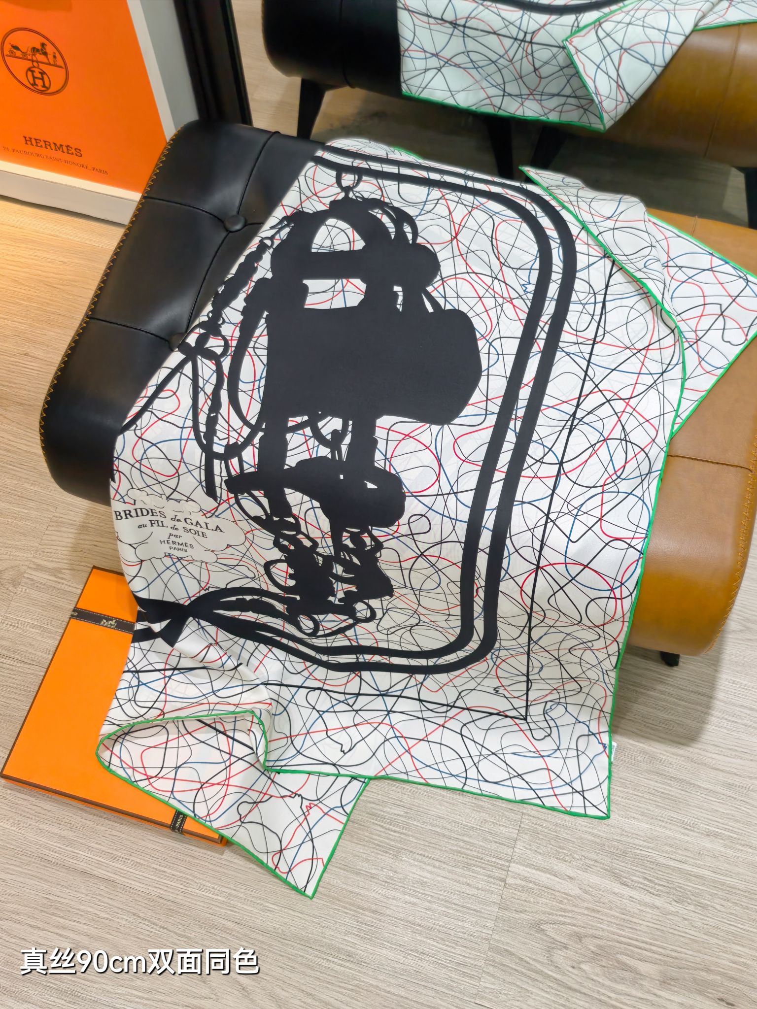 에르메스 브리드 드 갈라 앤 필드수아 (#1774296369120 - 화이트 블랙 - 90 x 90 cm) - 에르메스 악세사리 레플리카 - 세미샵
