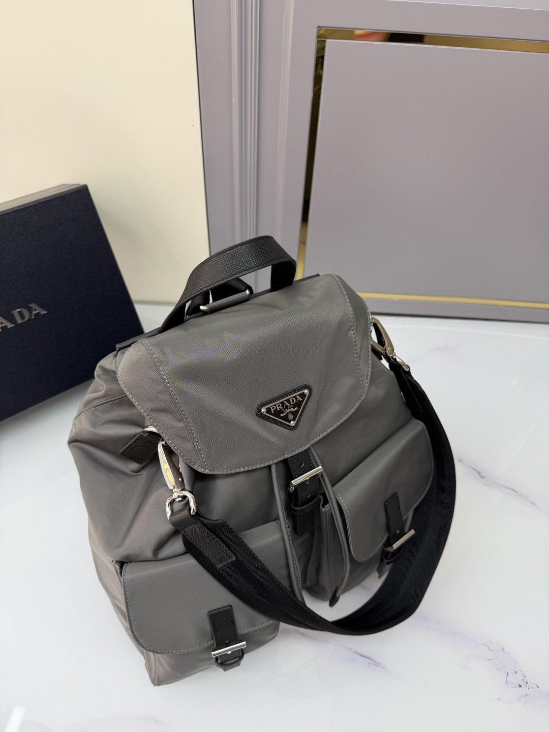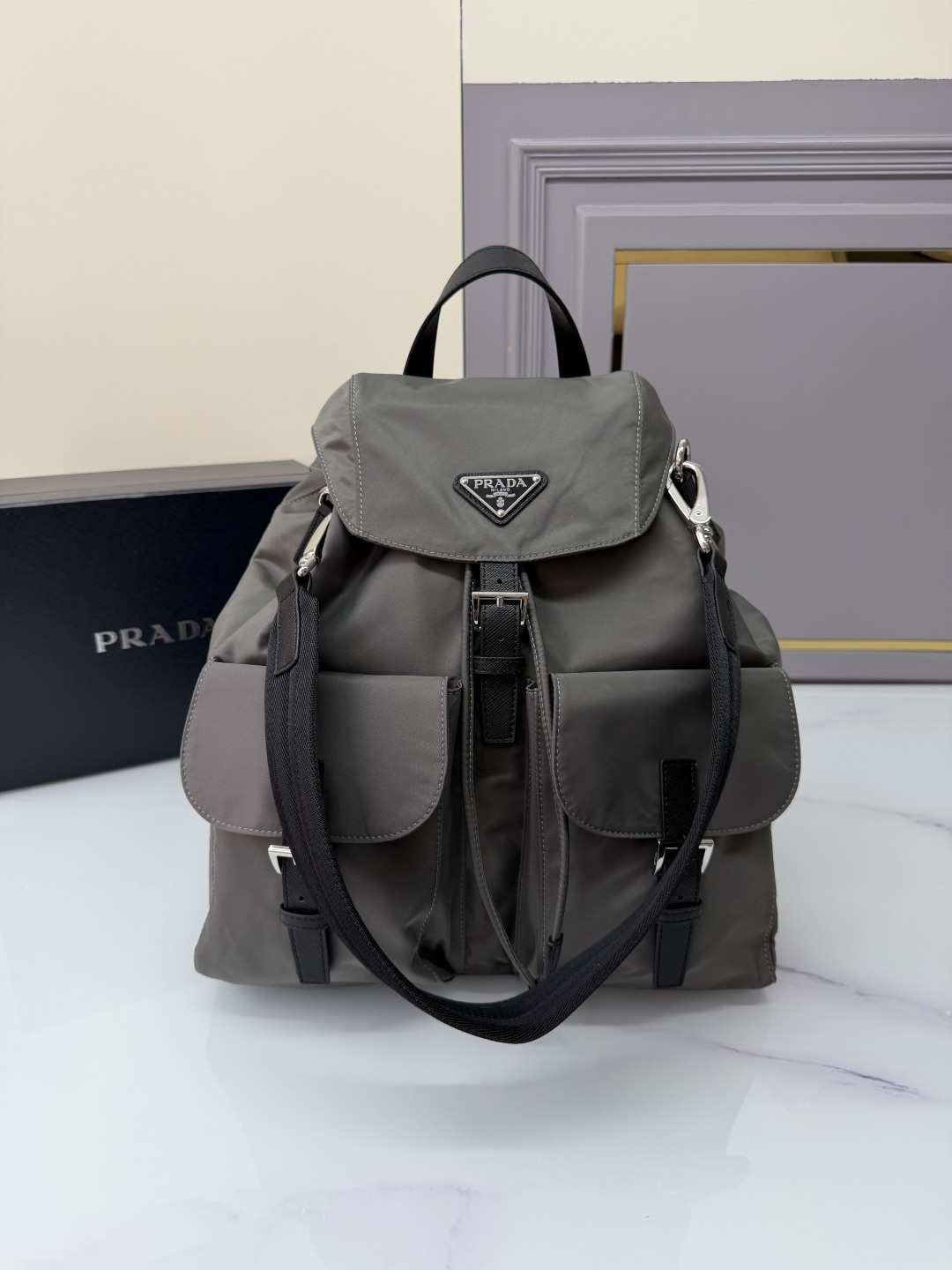 프라다 리나일론 백팩 (#1774198923008 - 그레이 - 39 x 34 x 15 cm) - 프라다 Bag 레플리카 - 세미샵