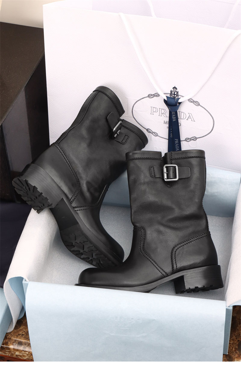 프라다 레더 앵클 부츠