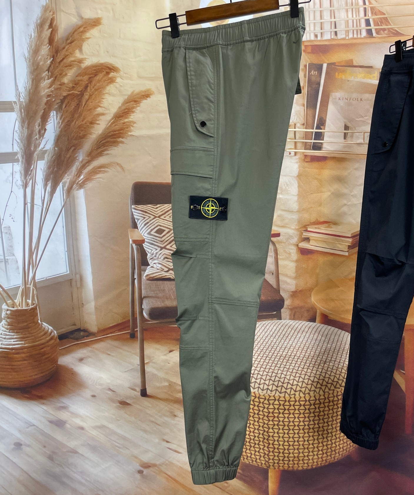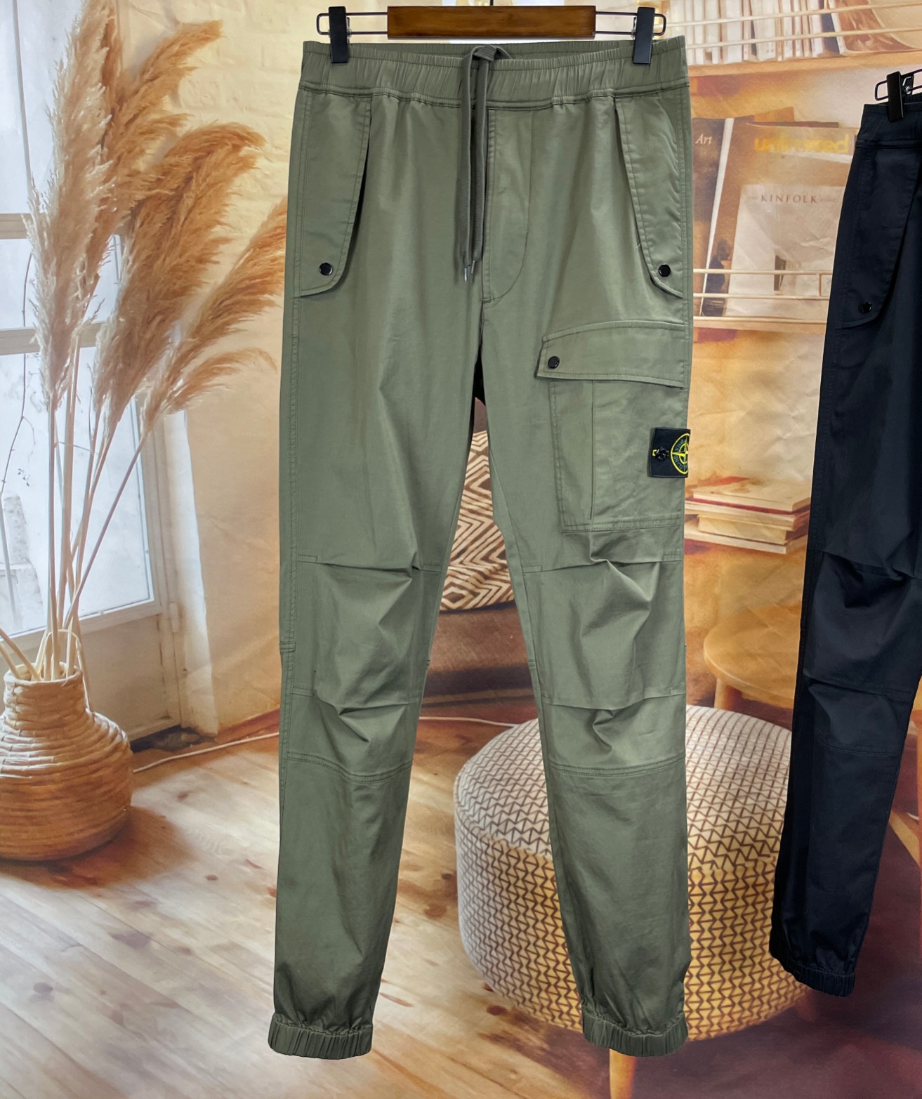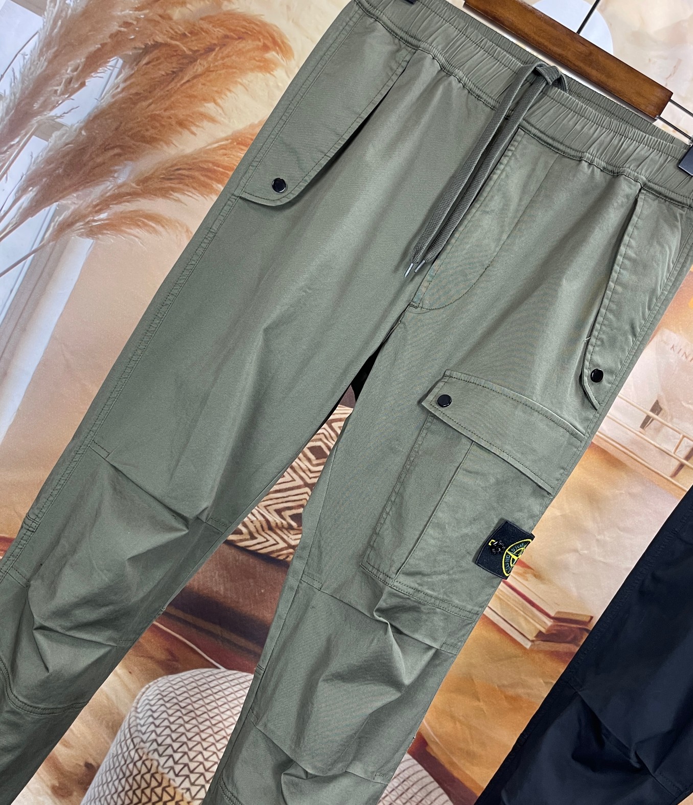 스톤아일랜드 가먼트 다이 스트레치 코튼 텔라 카고 조거 팬츠