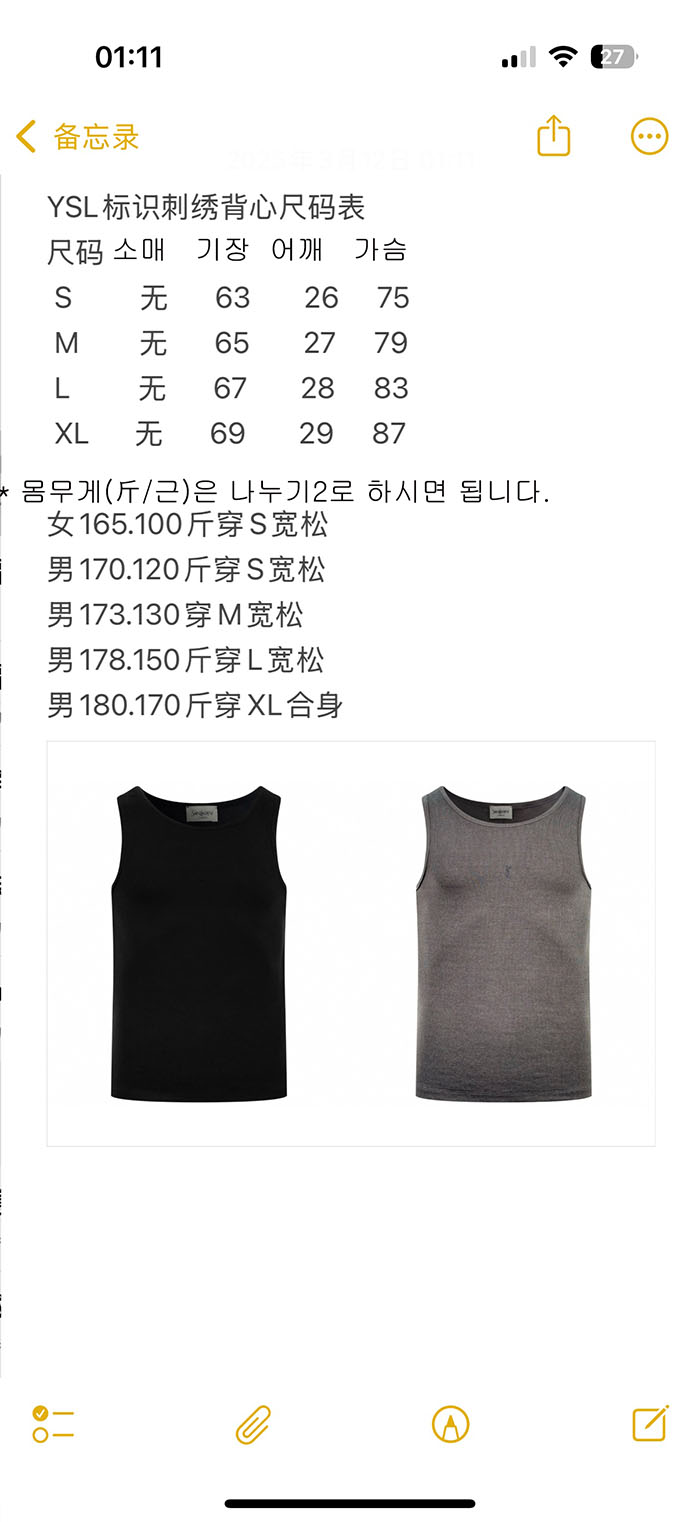 생로랑 카산드라 탱크탑 (#001 - S, M) - Saint Laurent 의류 레플리카 - 세미샵